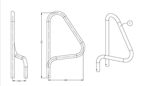 SR Smith Standard Grab Rail Narrow Spaced Figure 4- Single - For Concreting In
