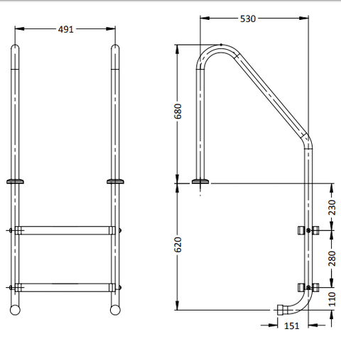 316 Stainless steel Mirror Polished general purpose 2 step ladder for most residential & motel pools.