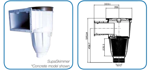 The Waterco SupaSkimmer is a large capacity skimmer box that is ideal for use in large domestic, semi-commercial and commercial swimming pools.